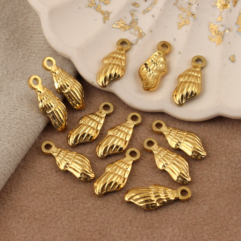 Zawieszka w kształcie muszli, wykonana ze stali szlachetnej 304.