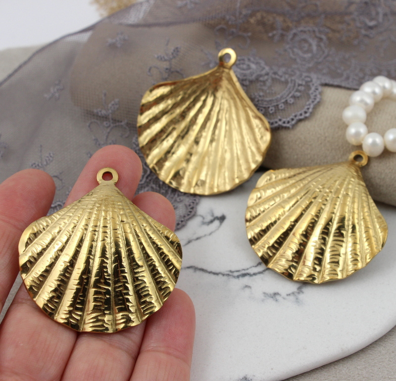Zawieszka muszla stal szlachetna pozłacana 48x45mm