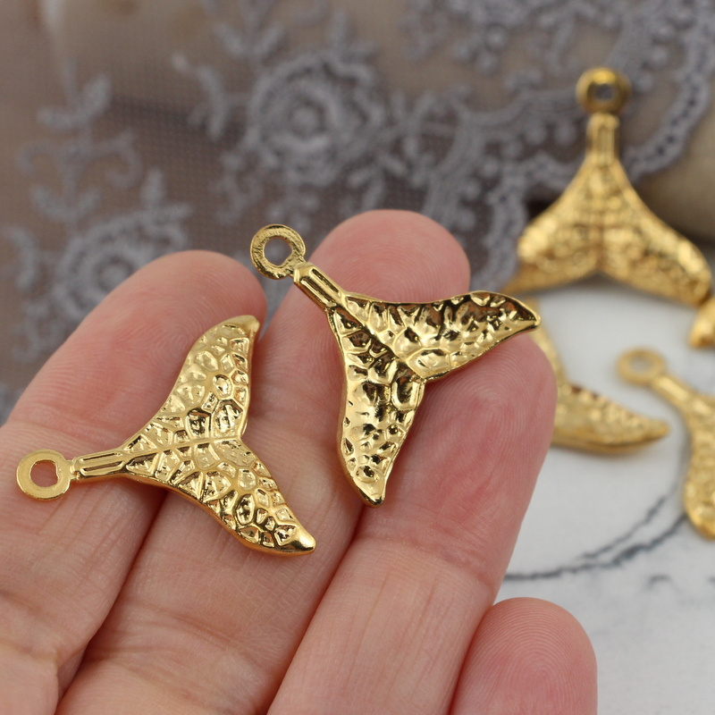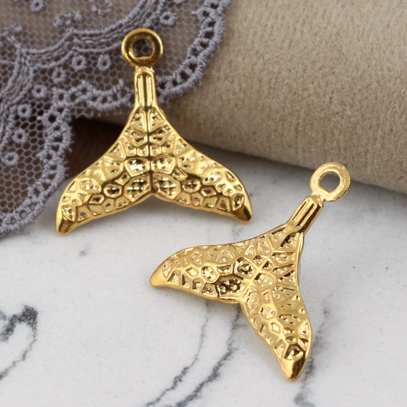 Zawieszka ogon syreny stal szlachetna pozłacana 25mm