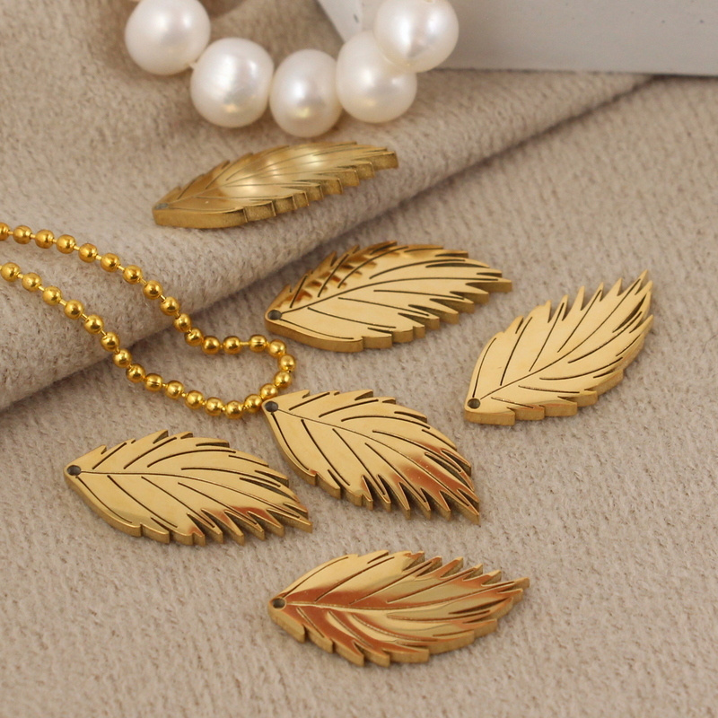 Zawieszka z polerowanej stali szlachetnej w kształcie piórka / listka.