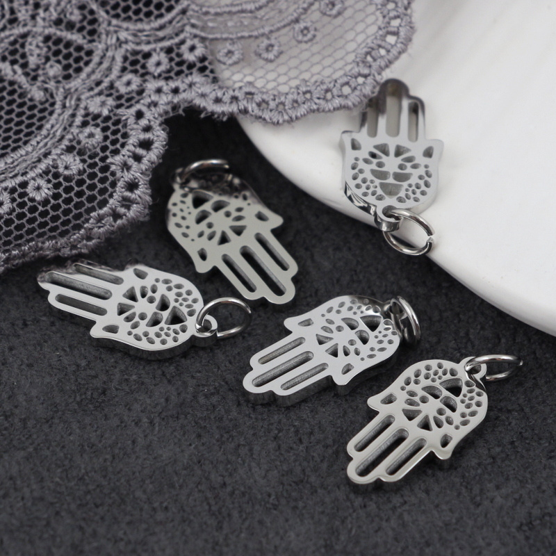 Zawieszka ze stali szlachetnej 304 w kolorze srebrnym, chamsa.