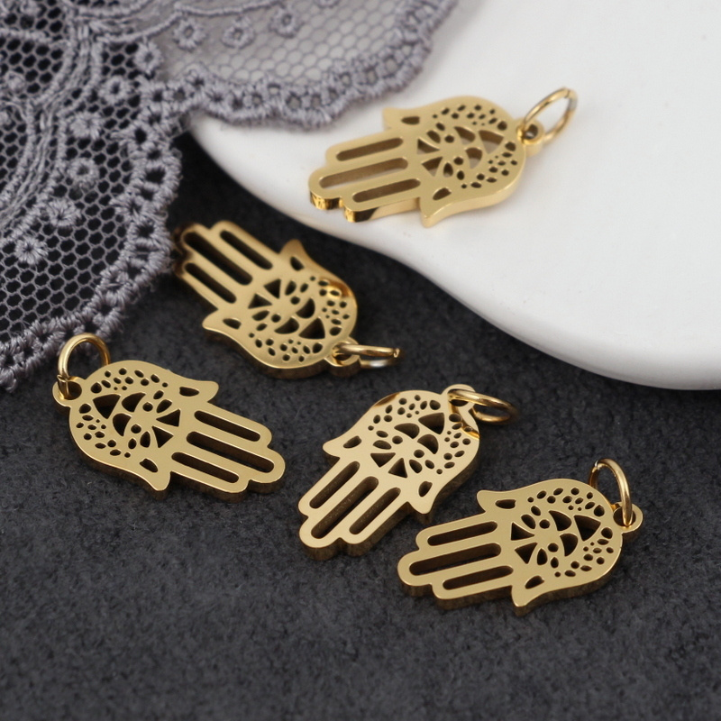 Zawieszka ręka fatimy hamsa stal szlachetna pozłacana 17x9mm