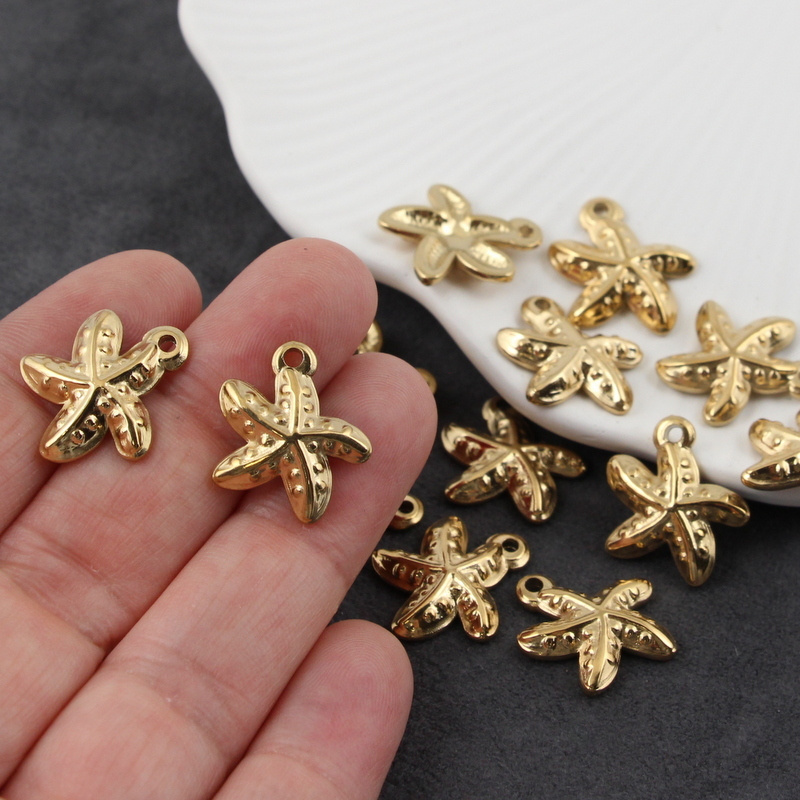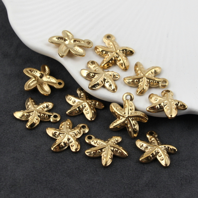 Zawieszki w kształcie rozgwiazdy wykonane ze stali szlachetnej 304, pozłacane.