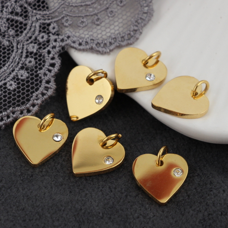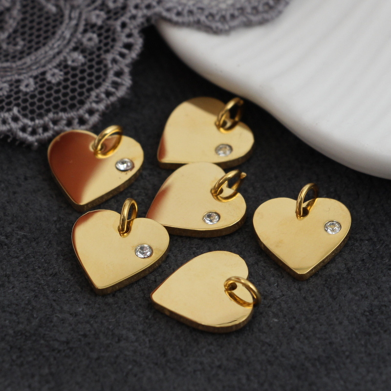 Zawieszka serce z cyrkonią stal szlachetna pozłacana 12mm