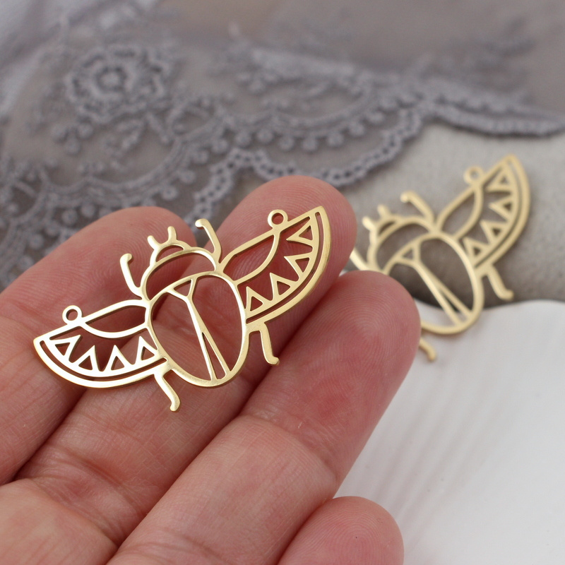 Zawieszka ze stali szlachetnej 201, pozłacana 18kT - w kształcie skarabeusza / chrząszcza.