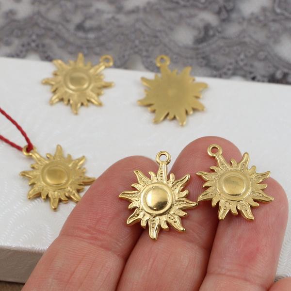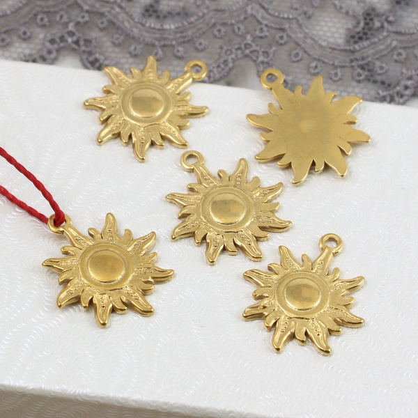 Zawieszka z pozłacanej stali chirurgicznej w kształcie słońca.