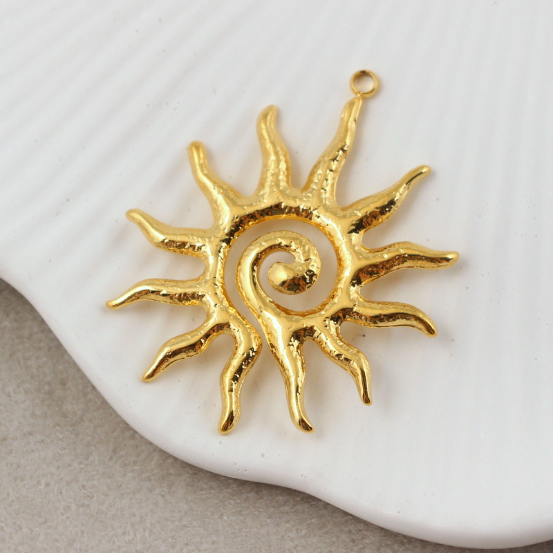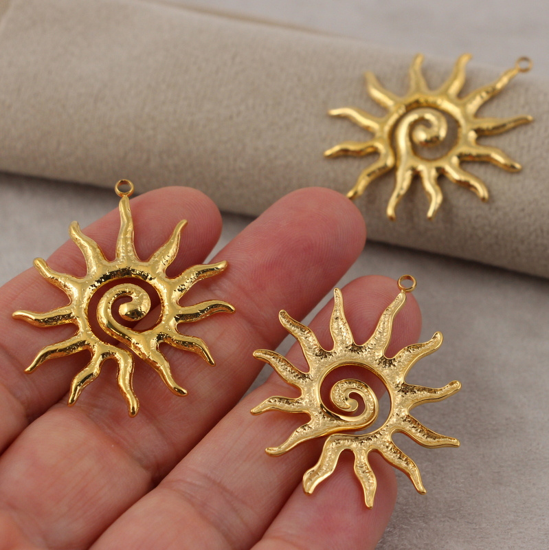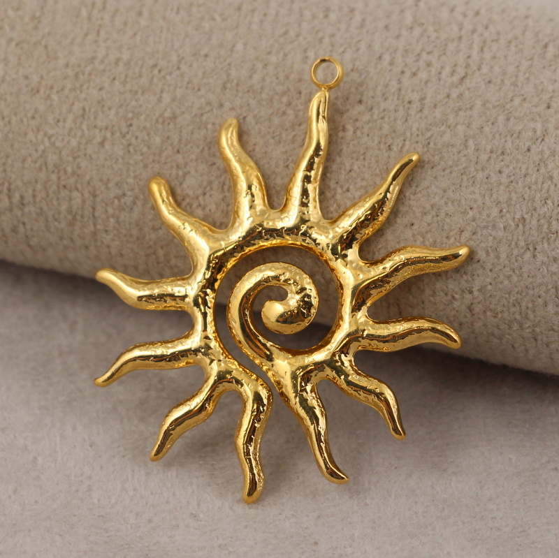 Urocza, duża zawieszka ze stali szlachetnej 304 w kształcie słoneczka, pozłacana 18kT.