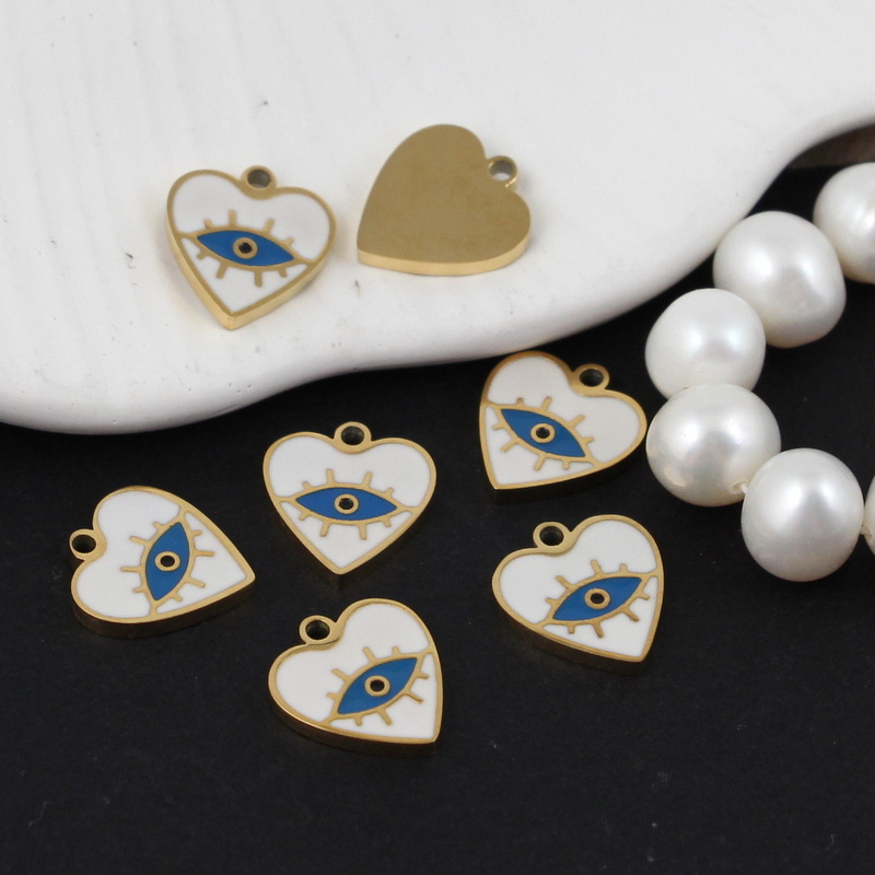 Zawieszka stal szlachetna emaliowana serce oko proroka pozłacana 10mm