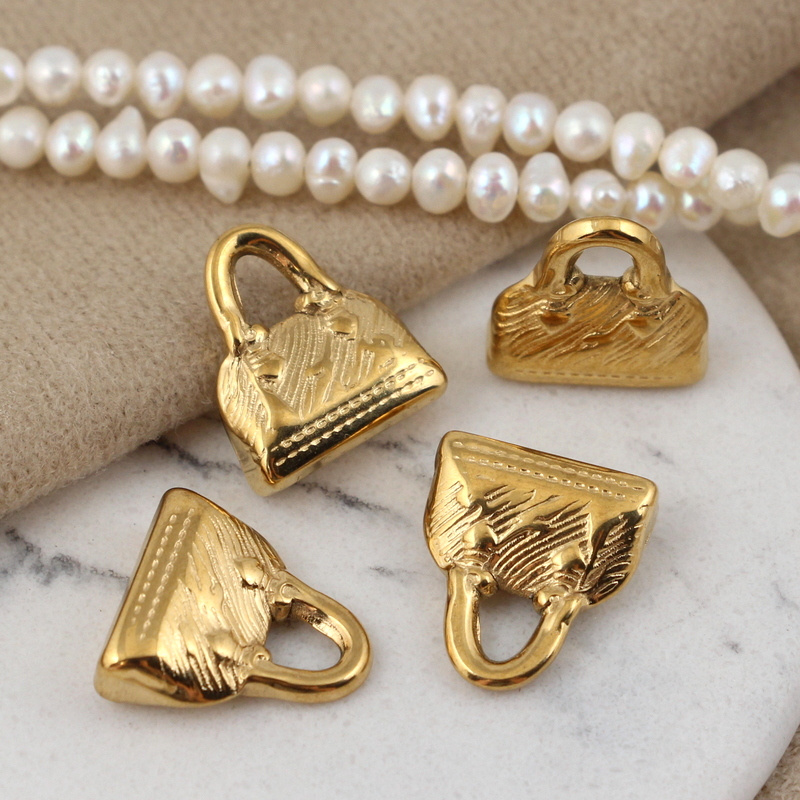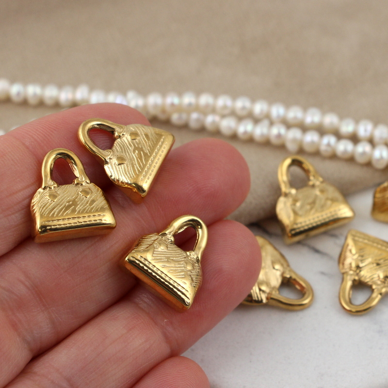 Zawieszka torebka stal szlachetna pozłacana 16x15mm