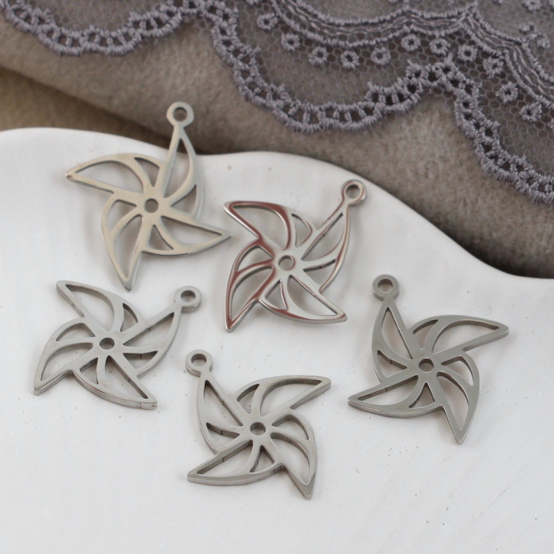 Zawieszki ze stali 201 w kształcie wiatraczka, stylizowanego na klasyczny wiatraczek-zabawkę z czterema łopatkami, które wirują na wietrze.