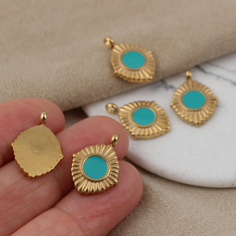 Zawieszka z turkusowym oczkiem stal szlachetna pozłacana 20x14mm