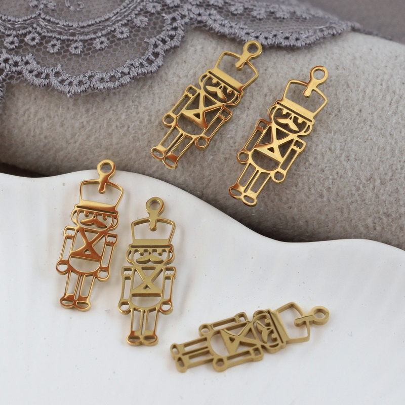 Zawieszka żołnierzyk dziadek do orzechów stal szlachetna pozłacana 22x7,5mm