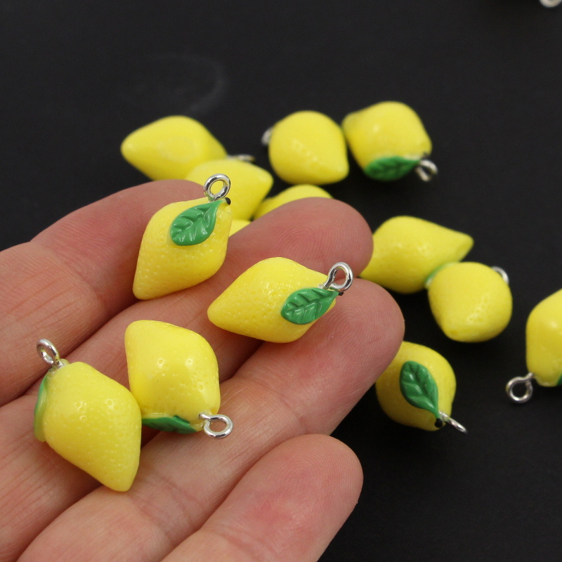 Duże, ale lekkie, bo akrylowe zawieszki w kształcie owocu cytryny.