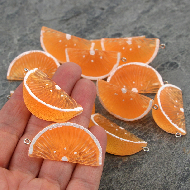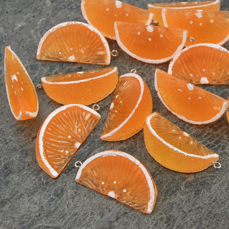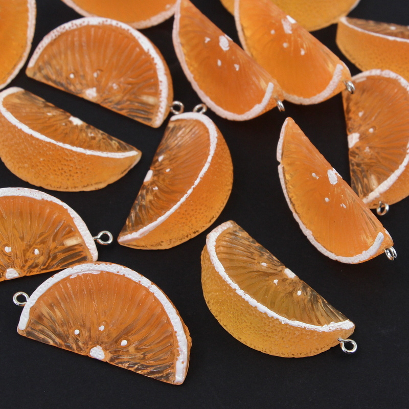 Duże, ale lekkie, bo akrylowe zawieszki w kształcie owocu pomarańczy - owoce są bardzo realistyczne i wyglądają soczyście.