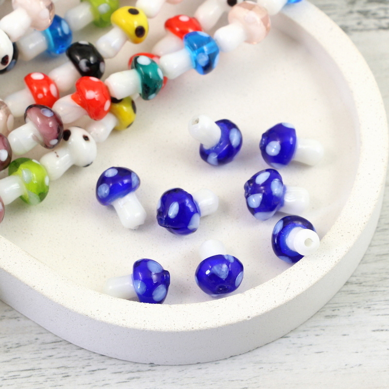Koralik szklany granatowy grzybek muchomor 16x10mm