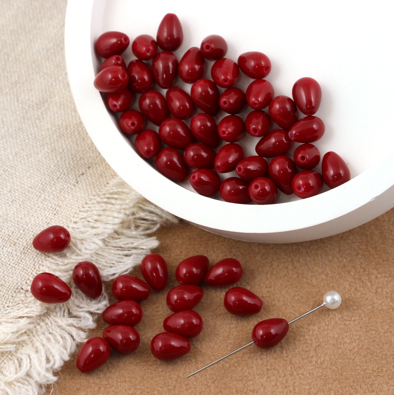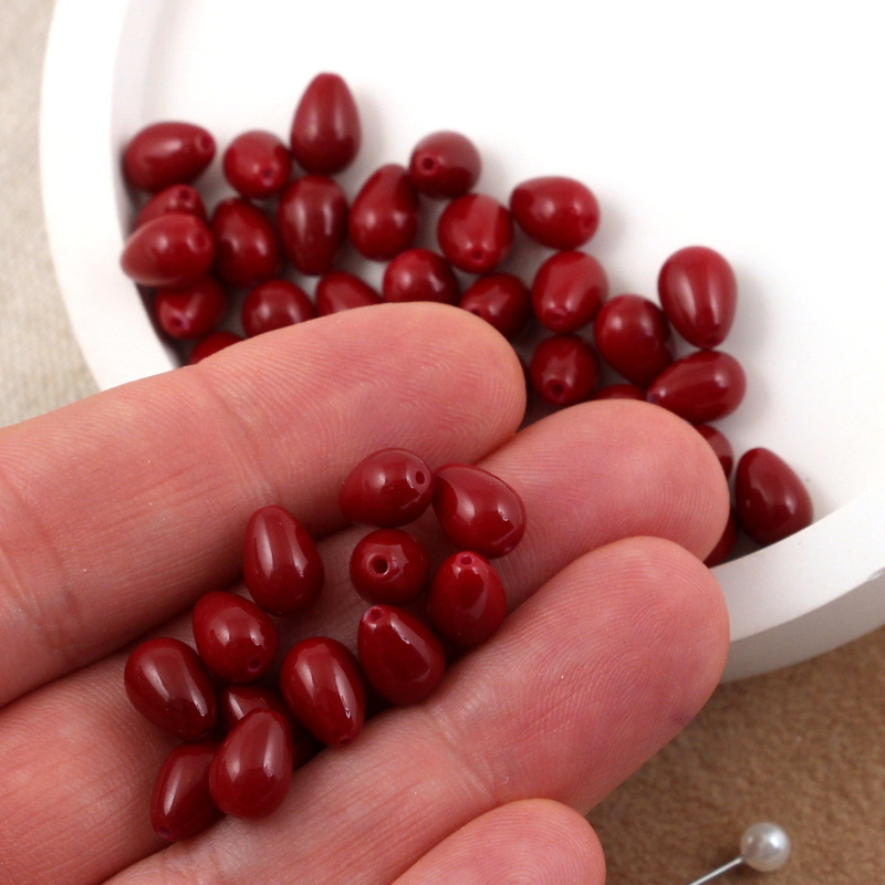 Koralik szklany kropla bordowa 9x6mm