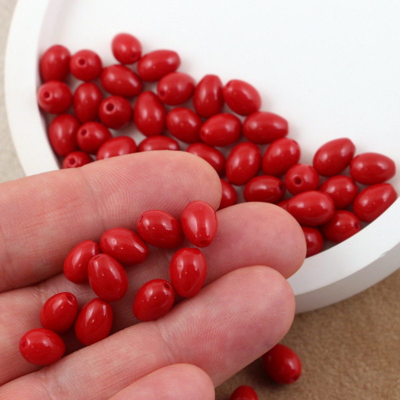 Szklane krople z błyszczącą powłoką. Kolor czerwony.