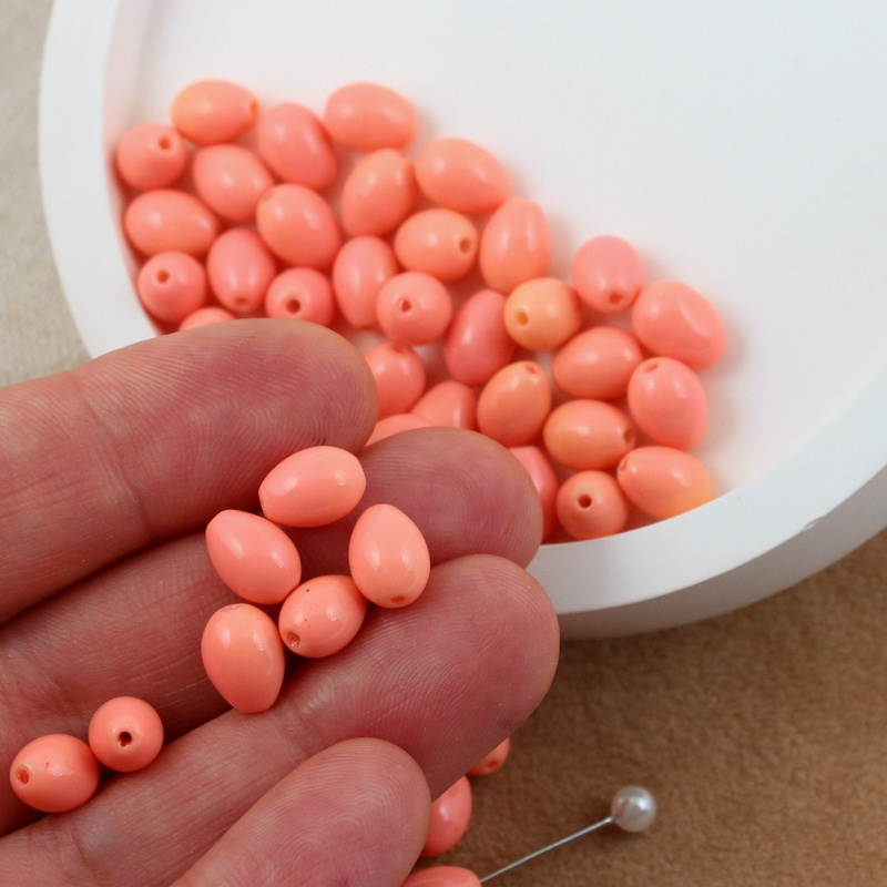 Koralik szklany kropla łososiowa 9x6mm
