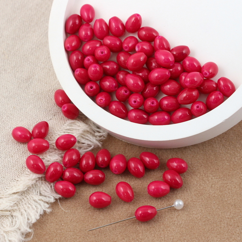 Koralik szklany kropla różowa fuksjowa 9x6mm