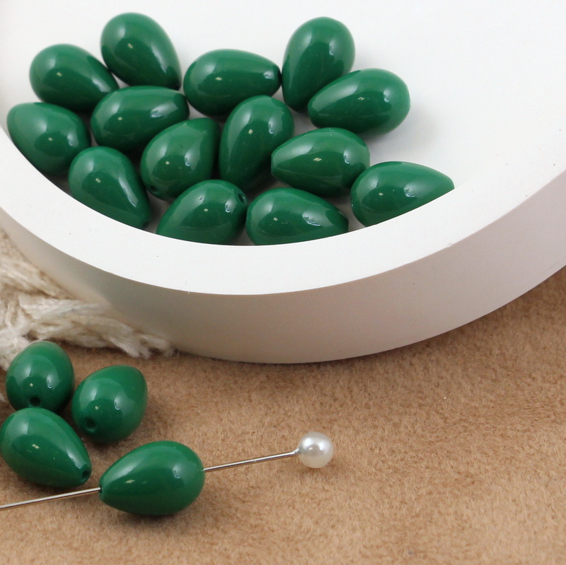Szklane krople z błyszczącą powłoką. Kolor zielony.