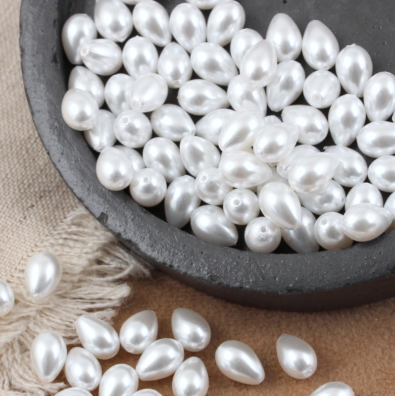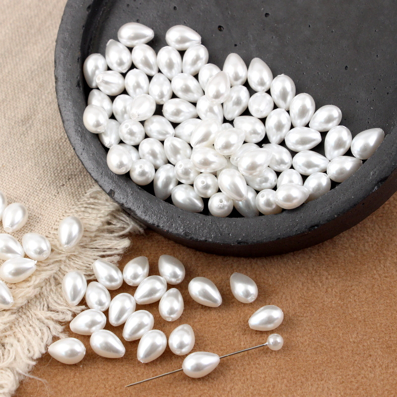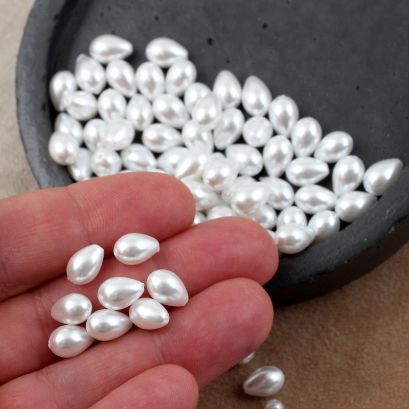 Szklane krople z perłową błyszczącą powłoką. Kolor biały.