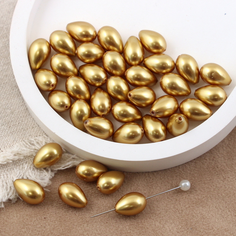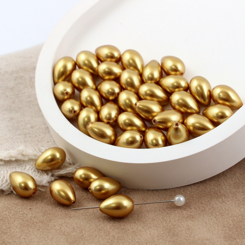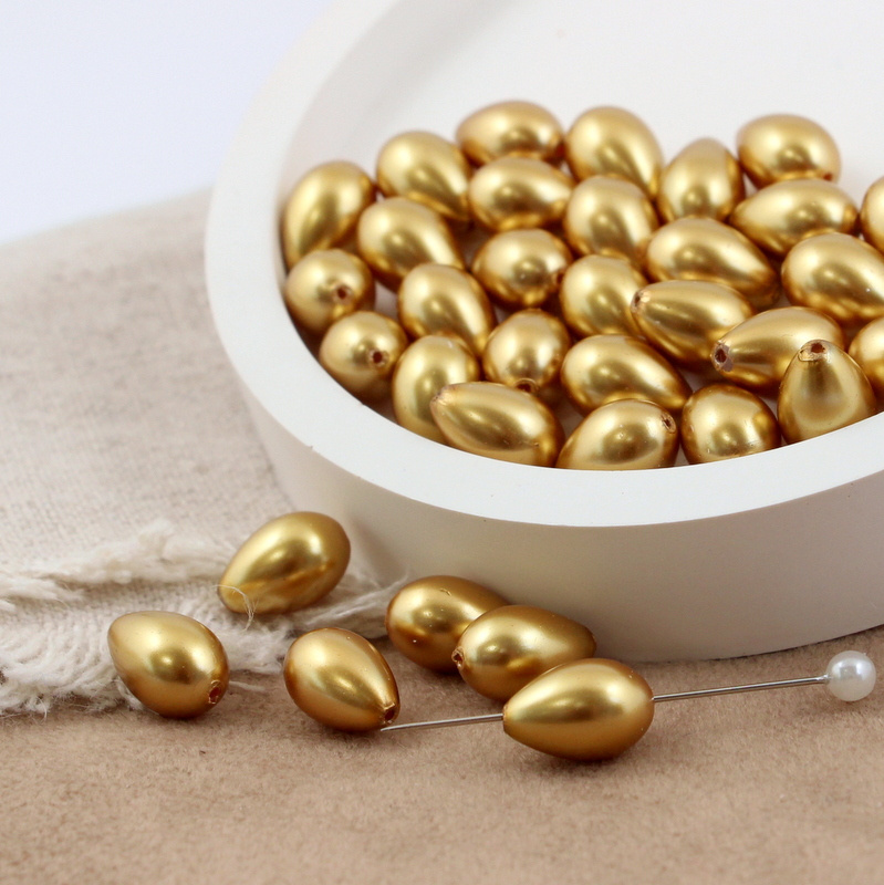 Szklane krople z perłową błyszczącą powłoką. Kolor złoty.