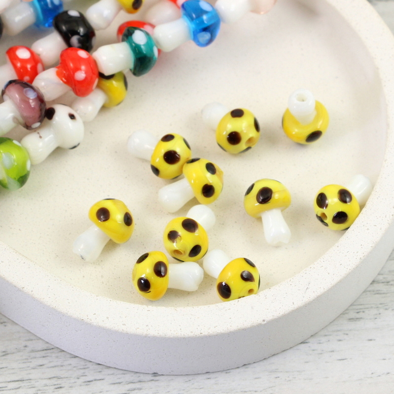 Koralik szklany żółty grzybek muchomor 16x10mm