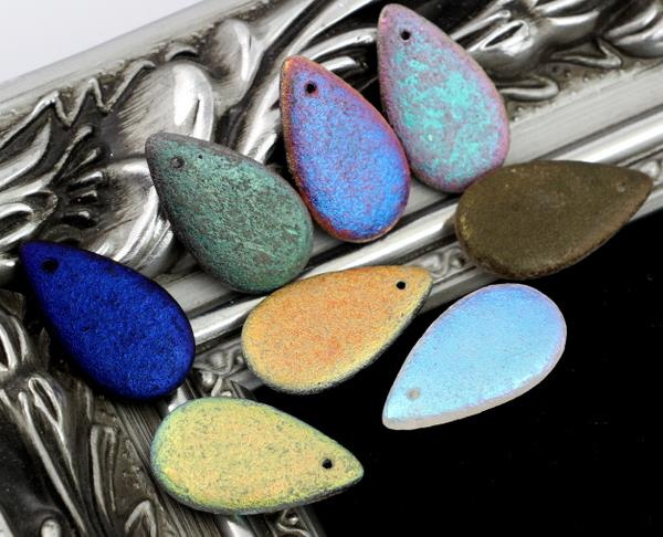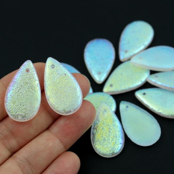 OpisSzklane, duże łezki, znakomite na kolczyki i wisiory. Są płaskie, dość cienkie i stosunkowo lekkie.