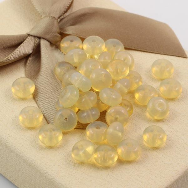 Małe, gładkie oponki w kolorze żółtym. Oponki są w miksie, część jest opalowych, część "czystych". W opakowaniu: 10szt
