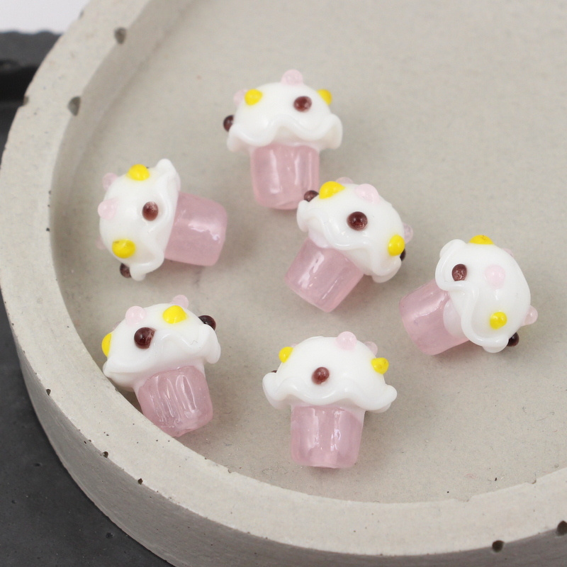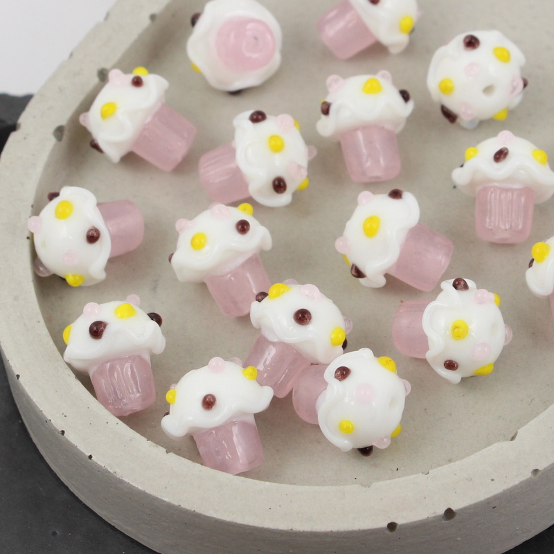 Szklany koralik w kształcie babeczki.