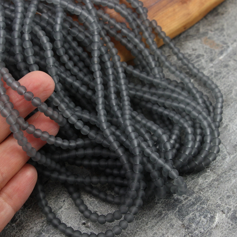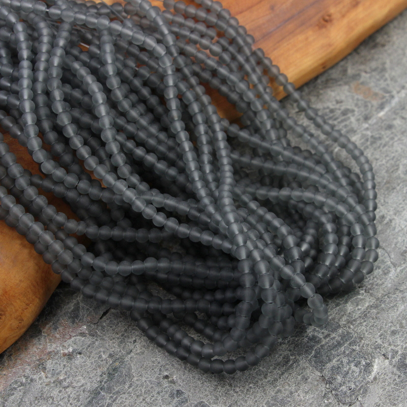 Szkło matowe kula szara 4mm [sznur 80cm]