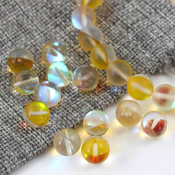 Szkło tęczowe żółte kula 10mm [4szt]
