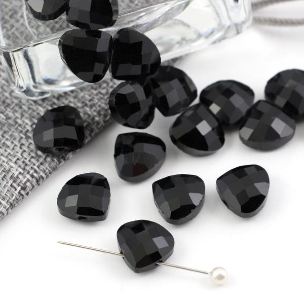 Kryształek szklany łezka fasetowana czarna 13x12mm [4szt]