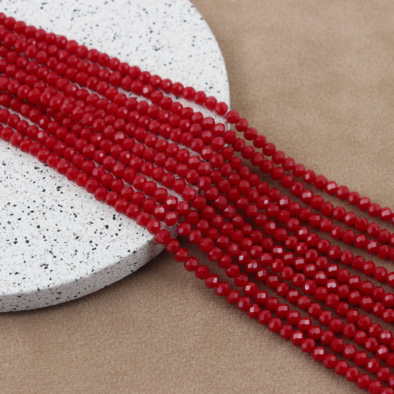 Kryształek szklany oponka fasetowana czerwona 4x3mm [sznur 42cm]