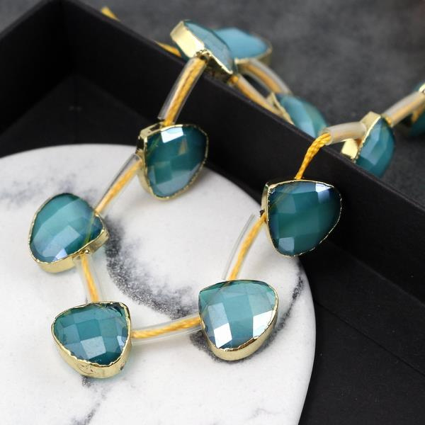 Szklana łezka fasetowana morska w złotym okuciu 13mm