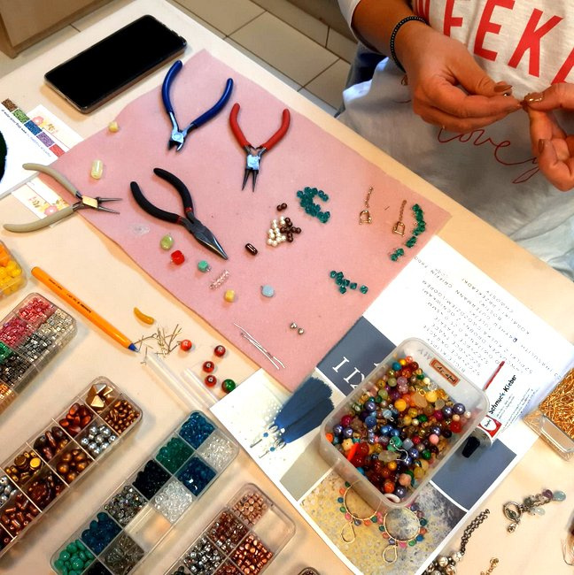 W czasie zajęć zapewniamy wszystkie potrzebne narzędzia i materiały. Po naszych warsztatach każdy z uczestników będzie umiał naprawić starą biżuterię, przerobić od dawna nienoszone naszyjniki i bransoletki na zupełnie nowe i stworzyć błyskotki od podstaw według własnego pomysłu.