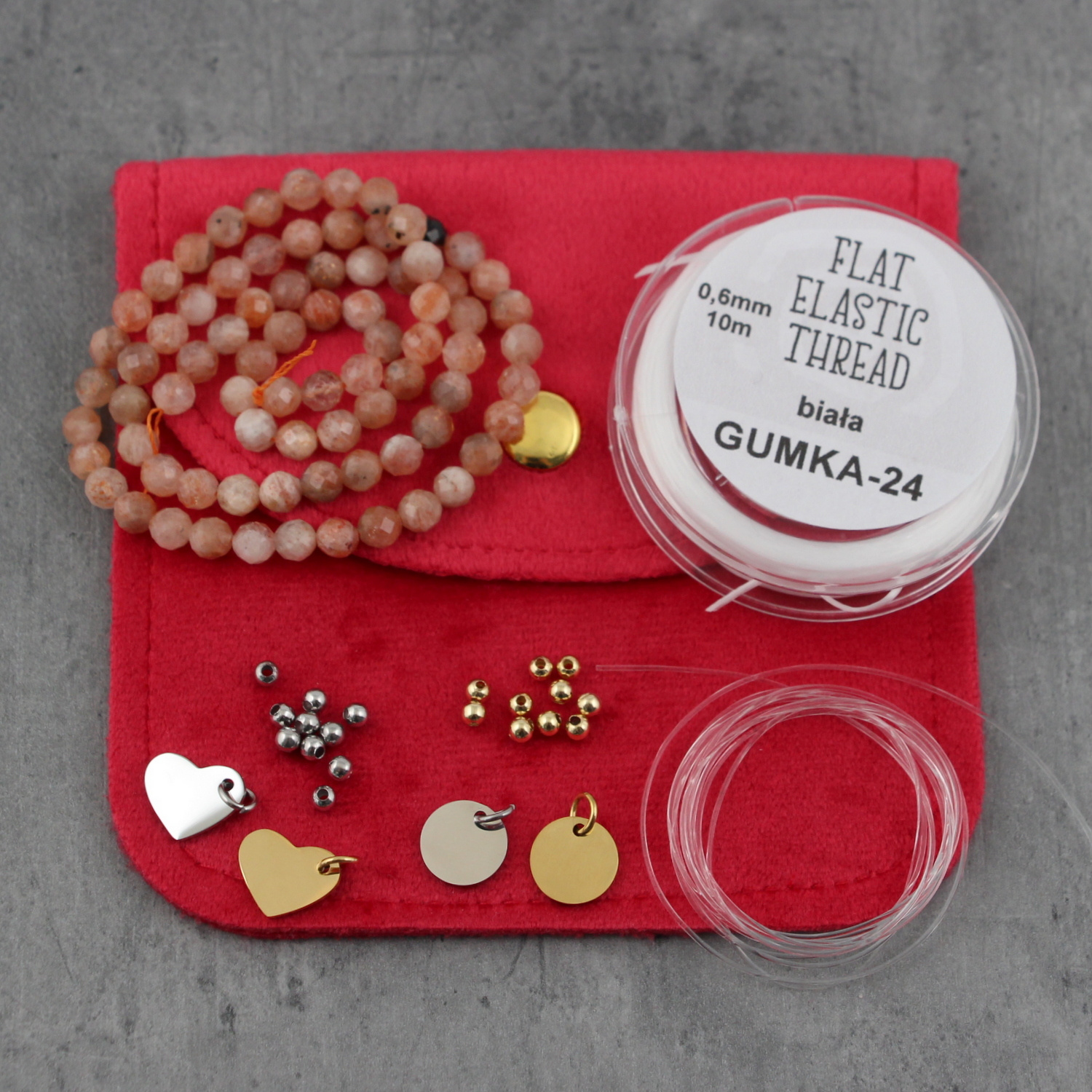 Zestaw do samodzielnego wykonania bransoletek na gumce z KAMIENIA SŁONECZNEGO (kulki faset 5mm)