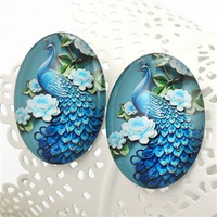 Kaboszon szklany z grafiką paw owal 40x30mm