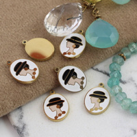 Zawieszka profil kobiety stal szlachetna pozłacana PVD emaliowana 12x6mm
