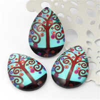 Kaboszon szklany Dk Opaque Red - Luster - Opaque Topaz/Pink łezka 18x13mm