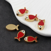 Przekładka emaliowana stal szlachetna ryba pozłacana/czerwona 14x7mm
