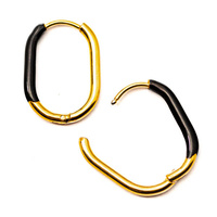 Bigle emaliowane owalne stal szlachetna pozłacana czarne 20x15mm [para]
